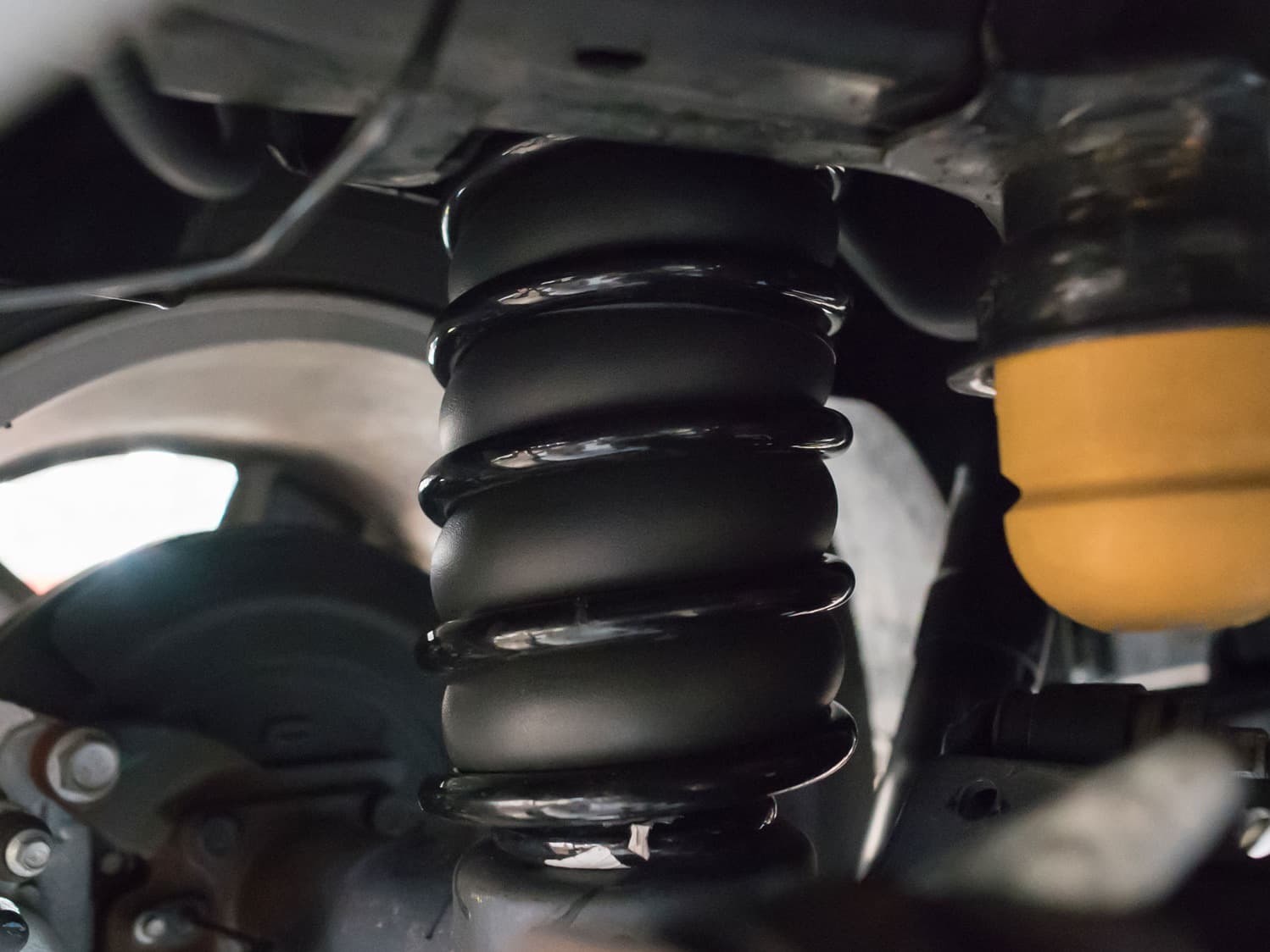 Heavy-duty air spring kit providing up to 2,100 lbs of load-leveling support for the 2009-2024 RAM 1500 Classic Body Style.